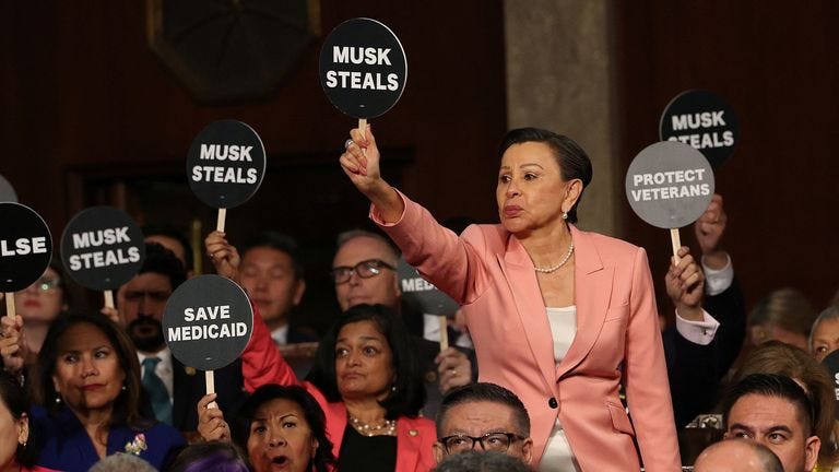 Trump talked a lot about his government fixing things while eliminating the very agencies that will be needed to fix the all the issues that he talked about. Does that make sense? It does to MAGA. Just like supporting veterans. Under the cover of all the coverage of the Führer’s address to Congress a memo was leaked that Trump’s Co-President and head of DOGE Musk plans to cut another 80,000 people from the Veterans Administration.[2] Yeah, that’s going to help take care of veterans. MAGA Republicans applauded and cheered when he talked about laying people off.